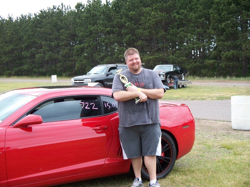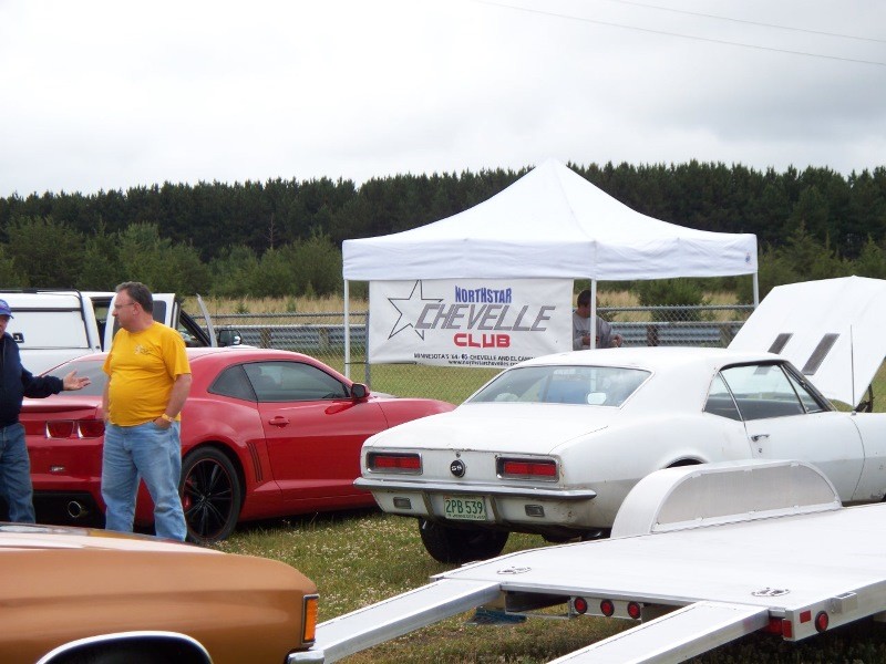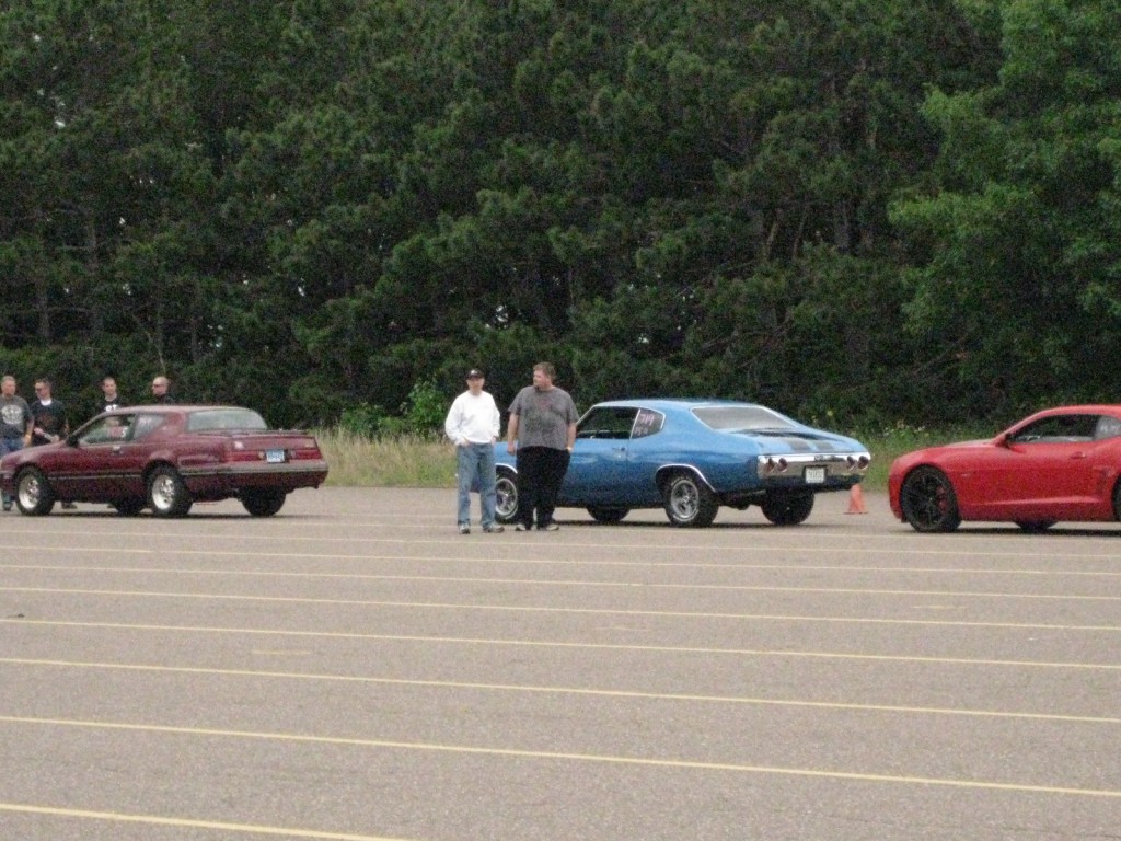 We drove in some light rain a couple times to get there and the start was delayed about an hour BUT, we raced !! Well, we all time trialed. Some of us left early for other obligations but it was GREAT to pilot a car down the quarter mile again after 33 years...:biggrin: I was able to squeeze a 14.6 @ 96mph out of my mild 350 with 3:31 open axle and street tires, so I'm OK with that. But this really brought the old NEED FOR SPEED back and I'm already planning a lock-rite for the diff and getting some sticky tires... The Camaro is almost 2 full seconds slower than my old '70 Chevelle but then the Camaro doesn't have a modified LS6 in it either. With a few traction enhancements and tighter gear changes, I think I can get it into the low 14's.