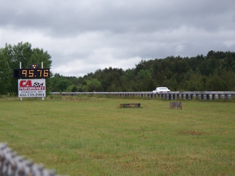 My last run was much better than the first 2. I took the far lane for it and it was much stickier than the tower lane. For some reason, I got both tires pulling with very little spin. Pulled a .188 reaction time and managed a 14.58. Sure got the old racing blood flowing again but I miss yanking the stick on the old M22.