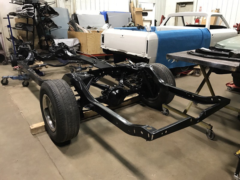 Blue Car: I should have my rotisserie back from neighbor sometime in the next year, allowing me to get back on this car. Need to finish underside, most is done, needs final caulk and re-spray, then bolt back on for good. Must decide on A/C factory converted or Vintage.