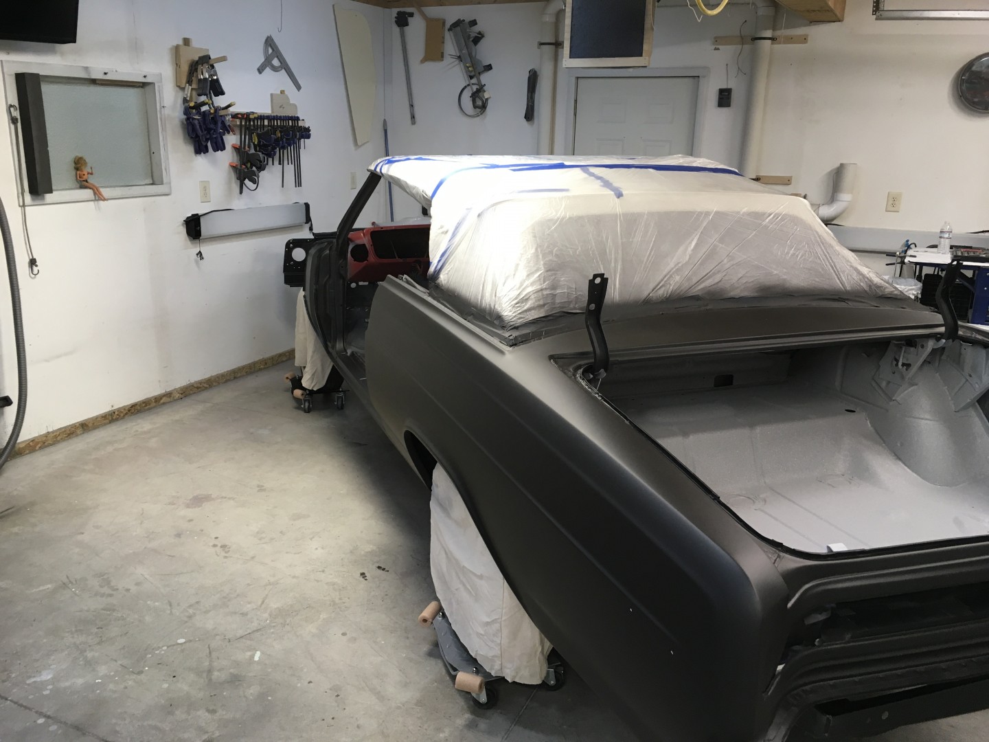 Good to see your back at it Kevin. I think painting the trunk on a rotisserie must be a lot easier then on a running car. That cover for the top is a p...