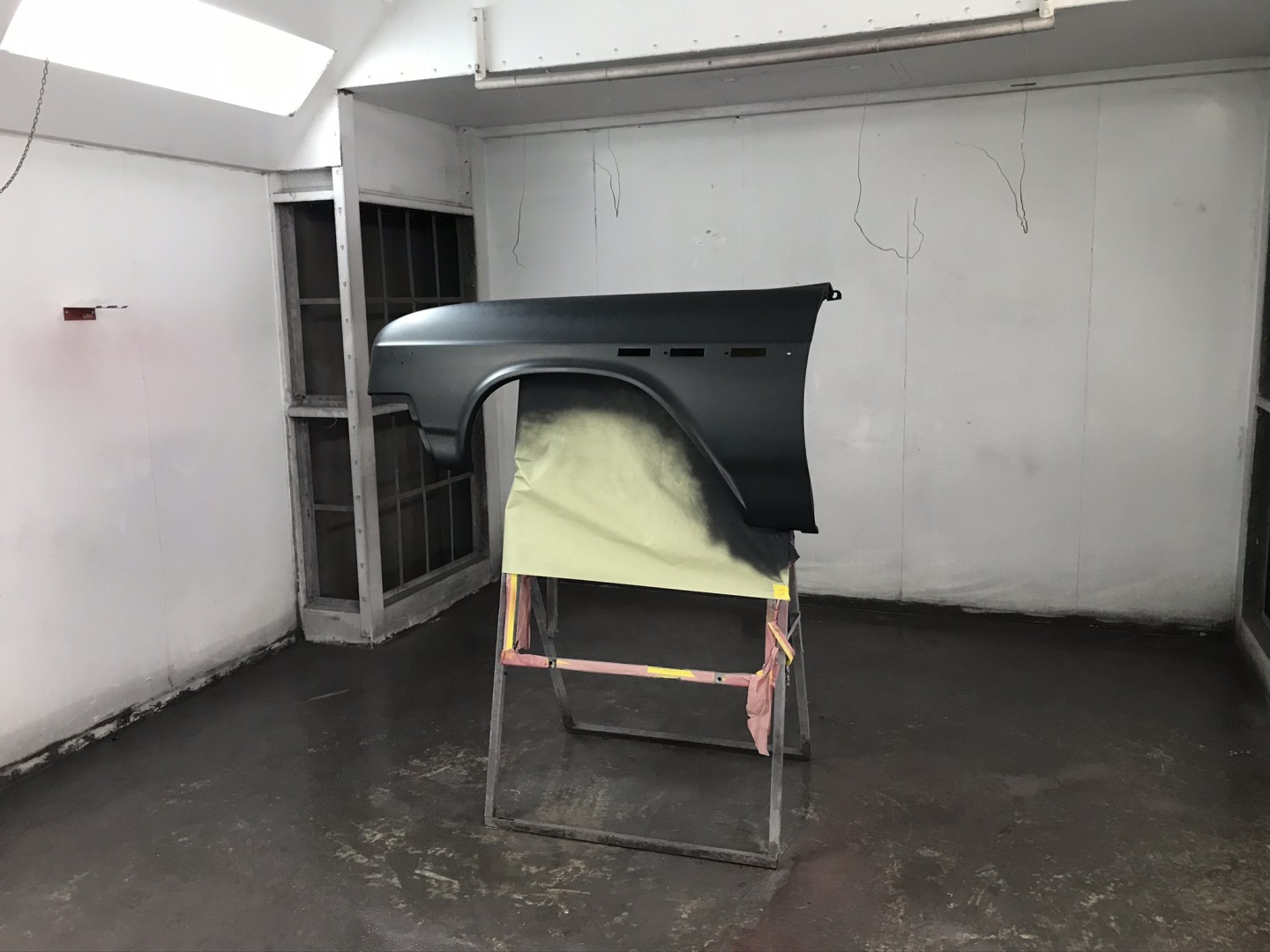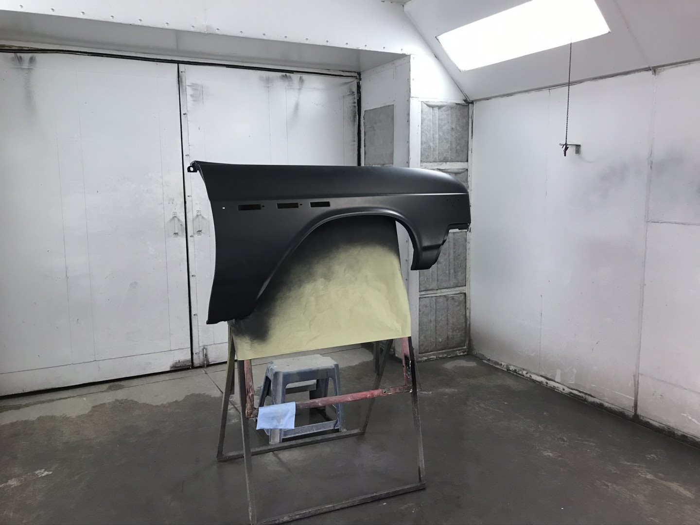 Using a buddy’s paint booth on an as available basis and receiving some excellent coaching and the use of a very sweet spray gun I’ve sprayed the my first paint; on my 70 birthday no less.