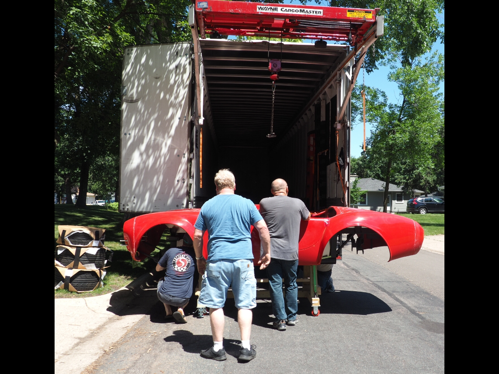 In all there were 26 boxes, 4 wheel/tire assy's, and the body & chassis. As the boxes come off the truck, they are checked off on the master list. The dolly worked perfectly, rolls very easily and is rock-stable.