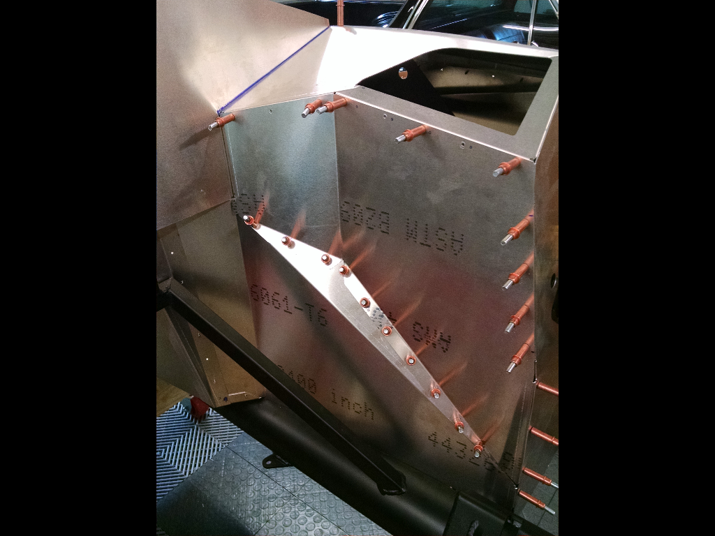 Yup... everything is riveted (aluminum pop rivets) either alum to alum, or alum to steel. My concern/question is a product to use between the alum to alum "footbox" and other panels to bond them together, bridge some gaps/fill holes, create a water-tight seal, and have a "toolable" and paintable squeeze-out.