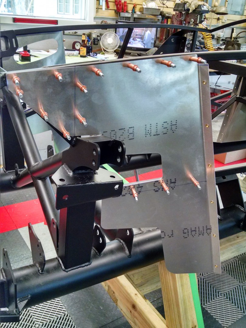 This is where it got interesting. Not a lot of room, and the only access when the panels are riveted together is through a small hatch in the top, or upside down on your head in the footbox. I really wanted to make it serviceable down the road. None the less, if a master cylinder needs replacement there will be a LOT of swearing involved.