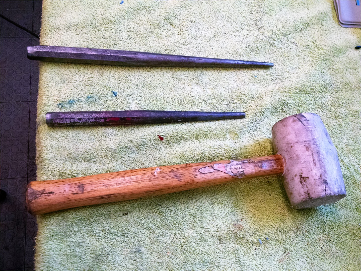 I stacked a couple of milk-crates, and set the diff on them. Slid it under the car. With an old bath towel on the crossmember to protect the paint, a few drift punches, rubber mallet, and the needed bolts at the ready time to grunt the SOB into place.