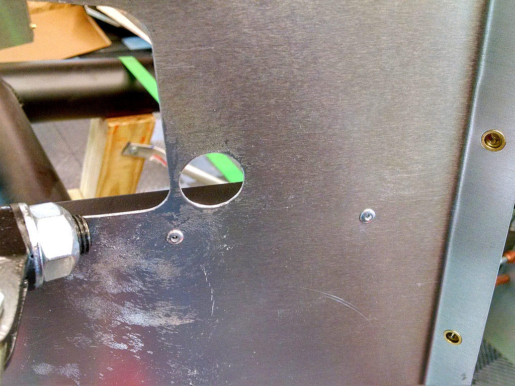 After all the holes were drilled and the panels removed, I twirled the countersink (by hand!) in each hole to break the burr off, used file & snips to make any radii I noted.