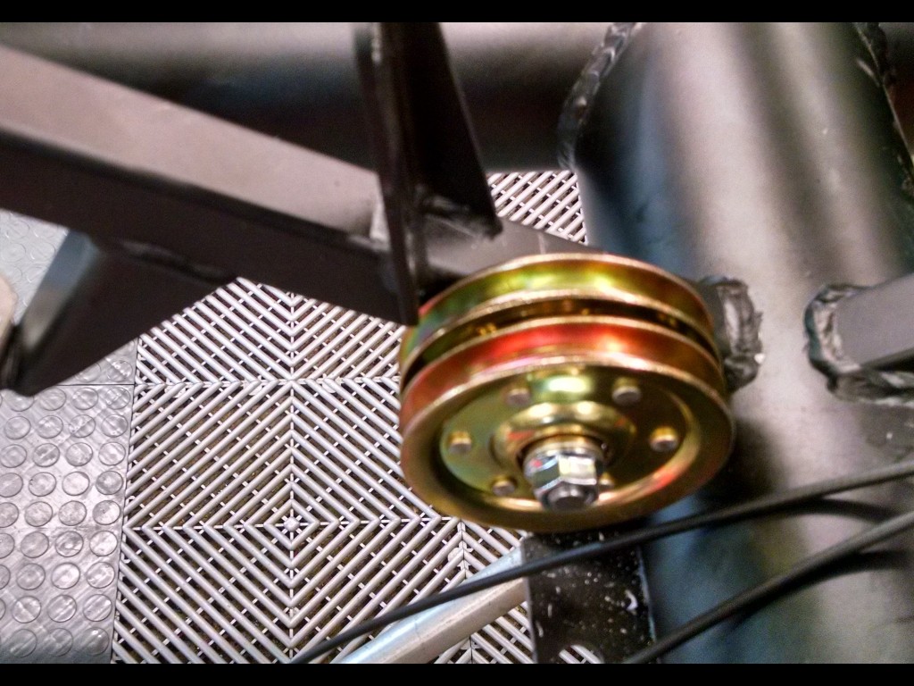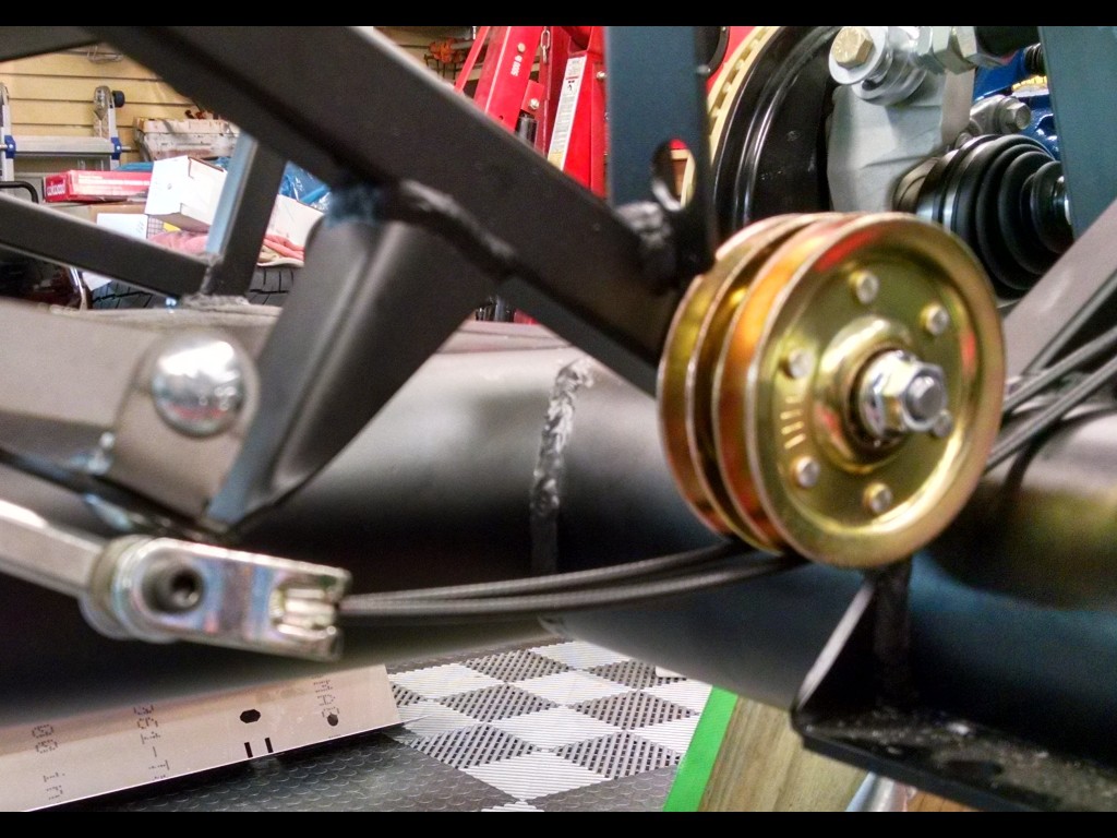 There's a popular modification in the FFR community, and this is my take on it. There's a lot of room in the transmission tunnel where the E-brake cables route into, and the addition of a pulley system moves the cables out from under the car (sacrificing the best "angle of pull") but moves the cables out of harm's way.