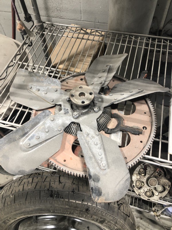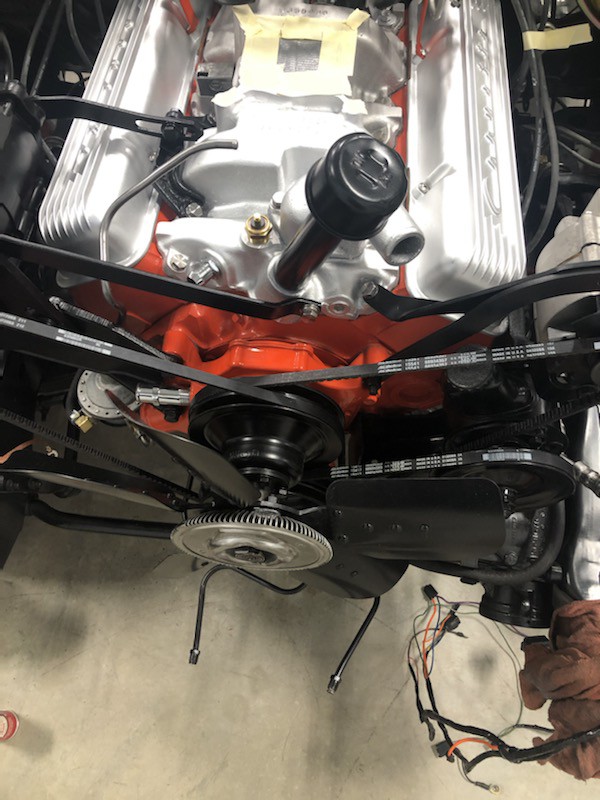 Water pump, Fan, clutch, pulleys, bracketry being test fitted, detailed.