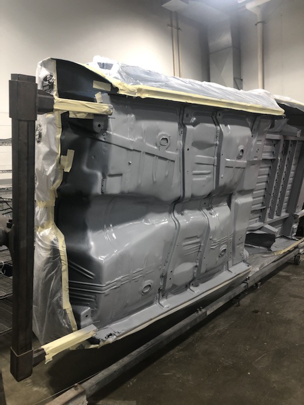 Split body and frame today, floors will get scuffed, epoxied, caulked and then painted.