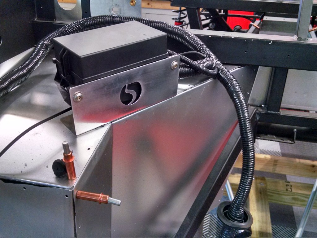 I had to sneak the Coyote ECU harness hole a bit to the driver's side, and mount the underhood fusebox a bit forward of the prescribed location so there's free-air to the heater core fittings. (If someone was "cookbooking" this thing together pagebypage they'd be in a problem).