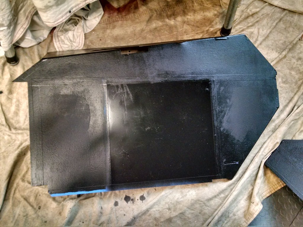 The last several sessions in the shop were prepping, painting or coating of most of the interior panels and installation of the trunk panels.