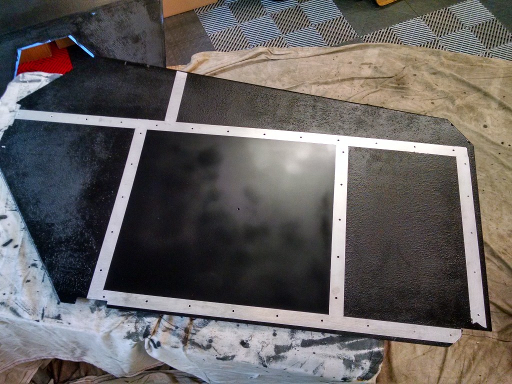 I’m doing #9365’s panels with a combination of rattle-can paint, and Rustoleum Truck-Bed liner. For me this was the most cost-effective way to get some protection on the aluminum.