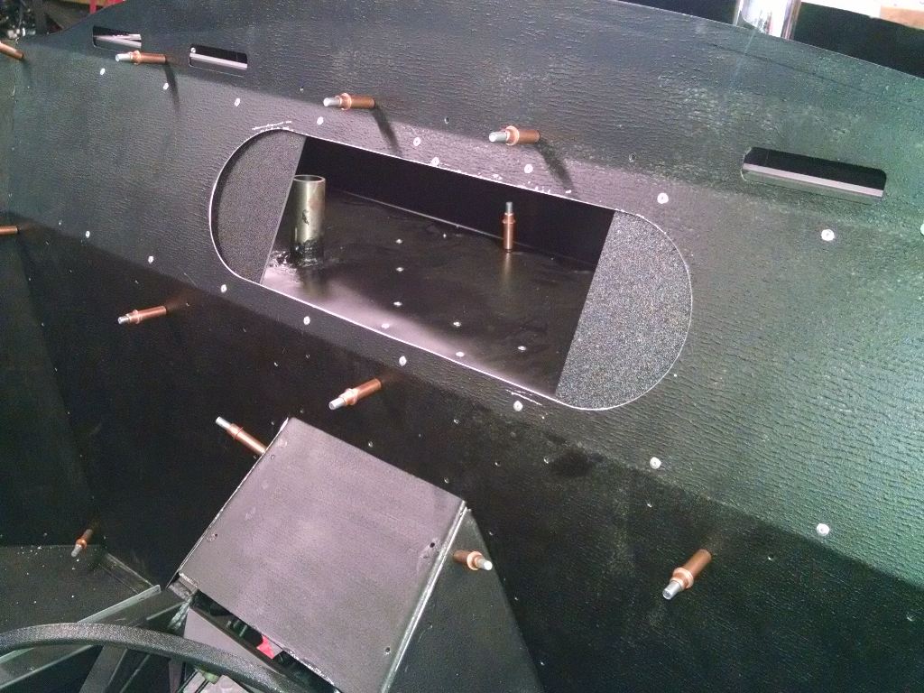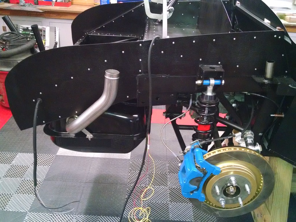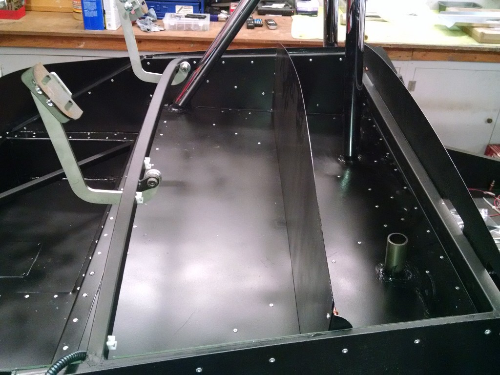 Been doing a lot of work on the floorboards and rear cockpit/trunk panels. I made a few panels that aren't included in the kit, but will make carpeting the trunk much easier. They cover the frame tubes on the upper trunk area (above the coil-overs).