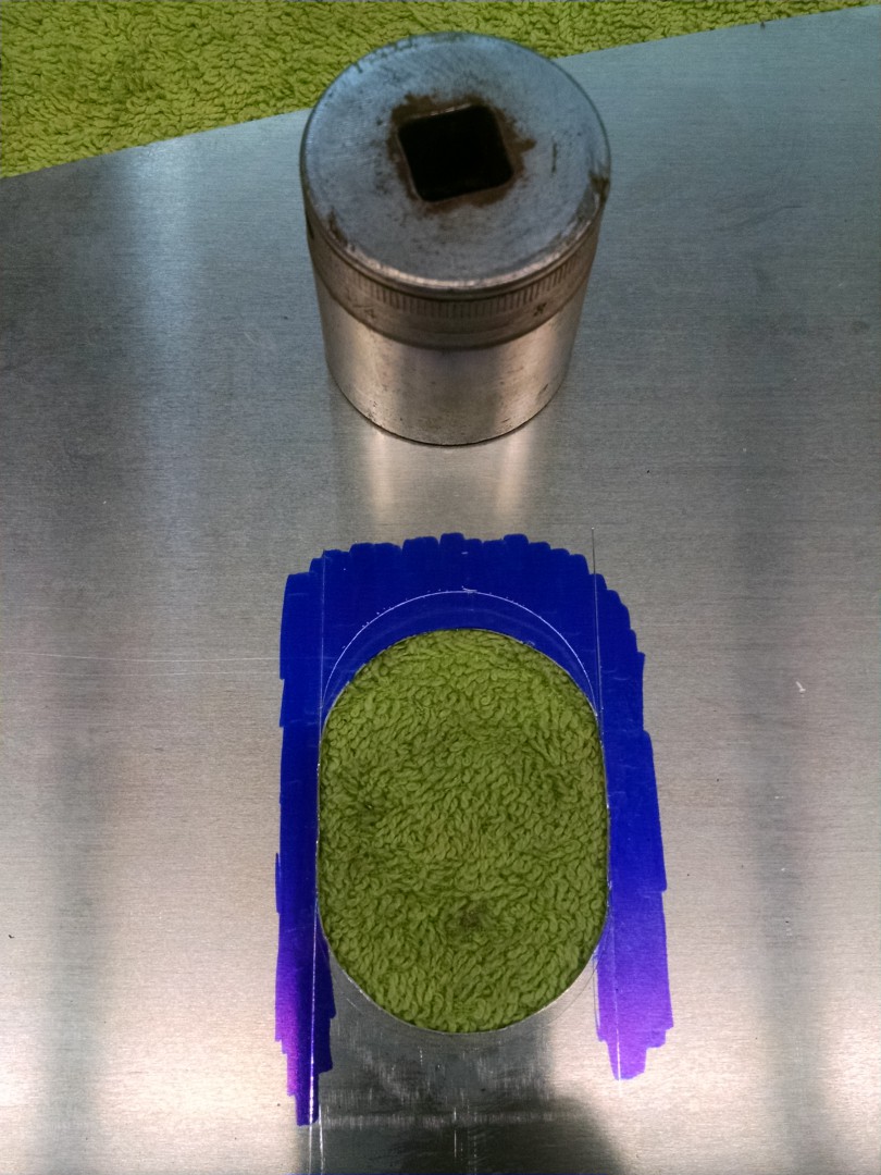 - It took some considerable filing and a session on the benchtop belt/disc sander to “shave off” some of the lower aluminum spacer to tuck it into the tight space left between the access hole and upper trunk floor. (If I was to do it again, I’d consider making the access hole 4-1/2” wide instead of 5”.)
