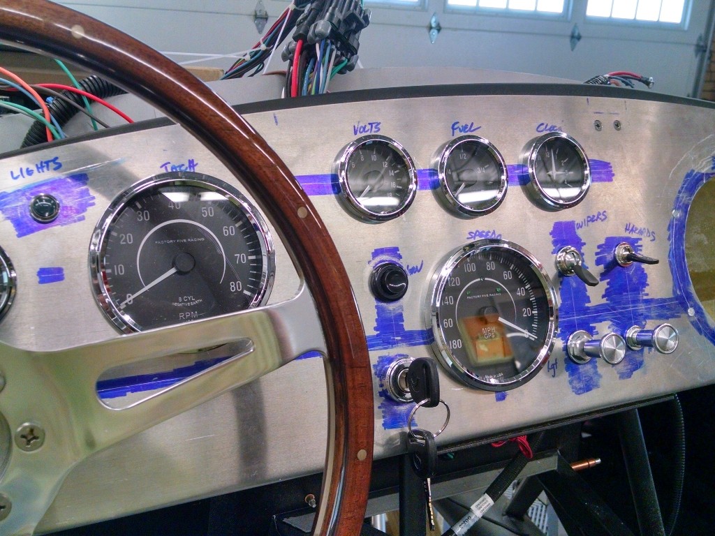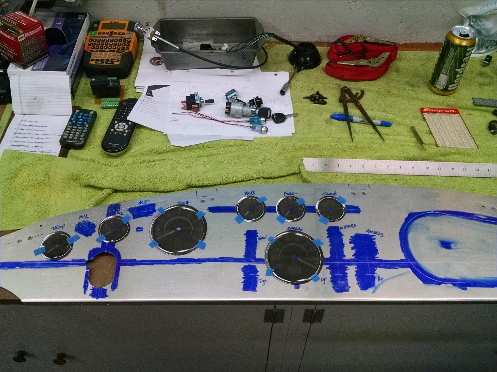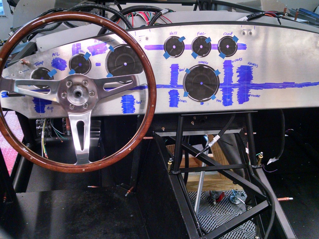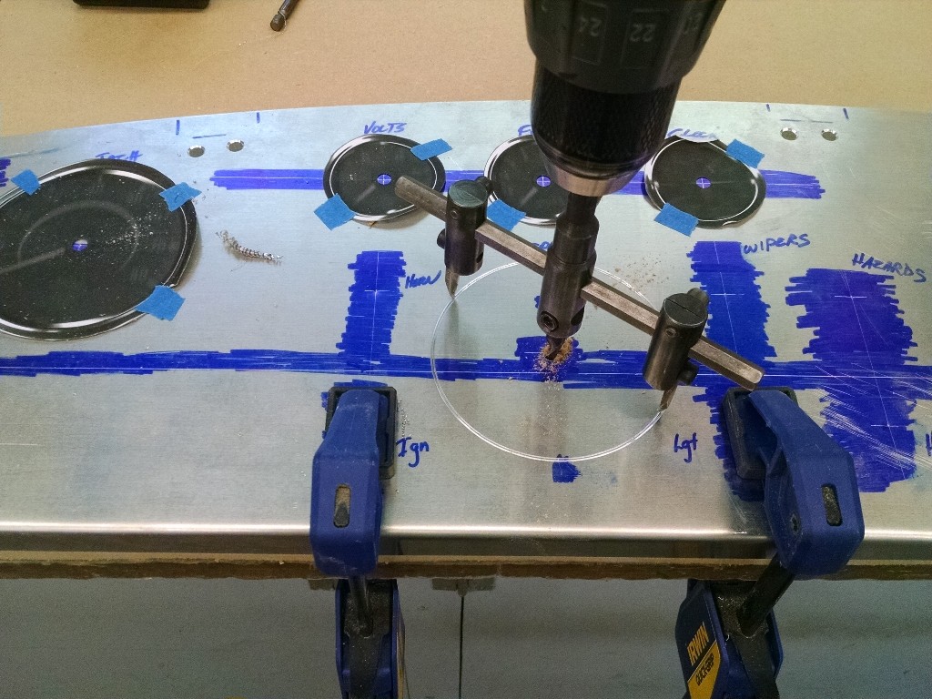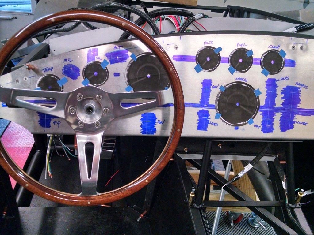The padding was attached using “77”, allowed to dry, and the holes cut out for the gauges, switches, and mounting screws.