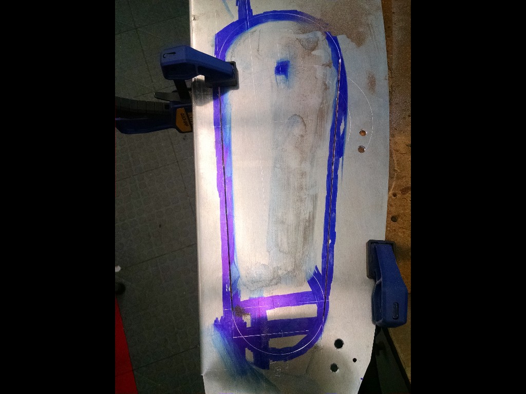 After drilling & fitting the raw panels (with Cleco’s) - Dive over/under/around the car and using a scribe, mark the panels where the frame members contact, and other panels overlap. Then they are all removed and the following steps done: - All rivet holes touched/deburred with a countersink - All large holes and edges are deburred (I use one of these) - The front and back sides are given a liberal sanding (120G, try not to remove all of your scribe marks). - Panels are wiped down with Acetone or “Wax & Grease” remover (wearing gloves).