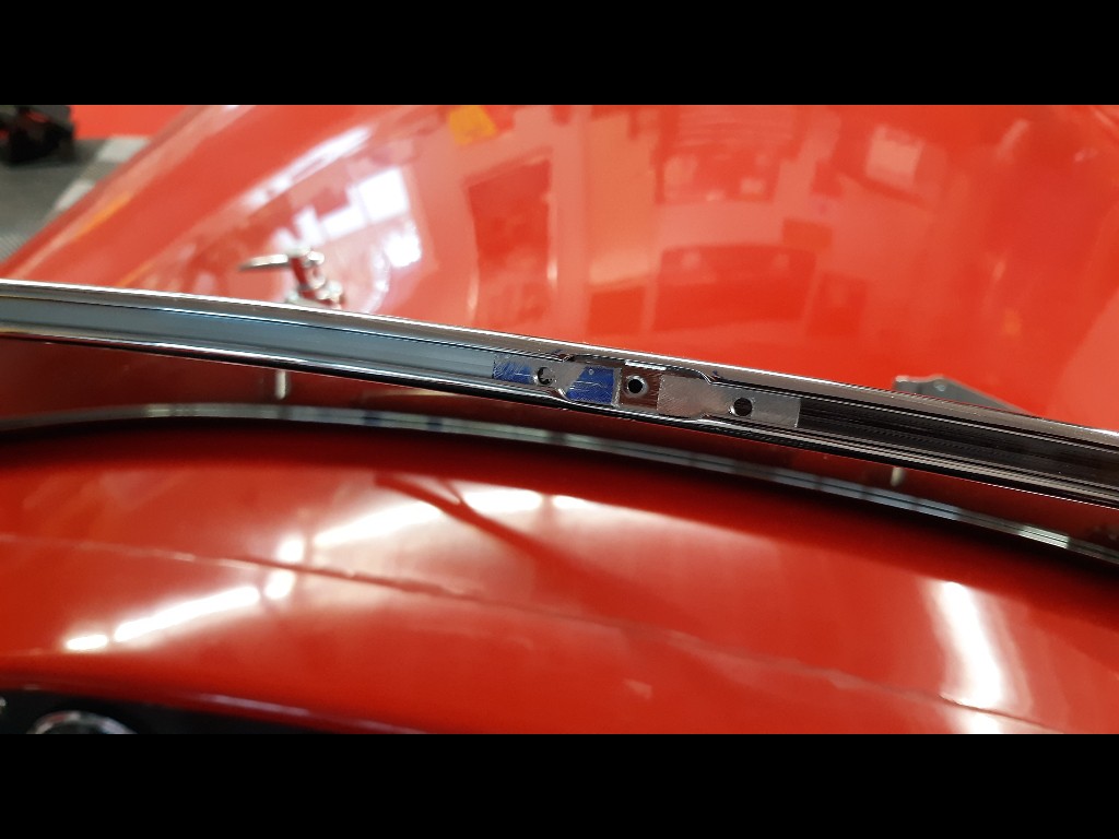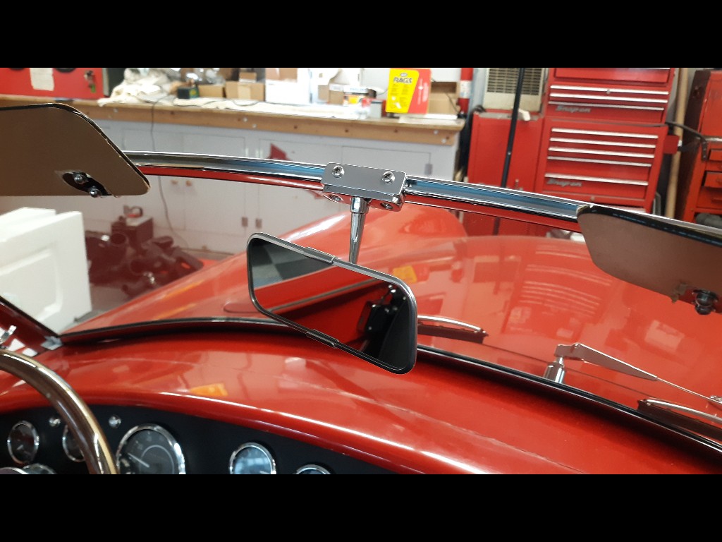 A piece of 1x1 aluminum angle was cut and trimmed down to fit the base of the mirror and the top of the windshield frame. A few holes drilled, some tapped, and a session on the rag-wheel with some polishing compound. The trimmed off pieces were filed down, and made into thread inserts that slid into the windshield frame