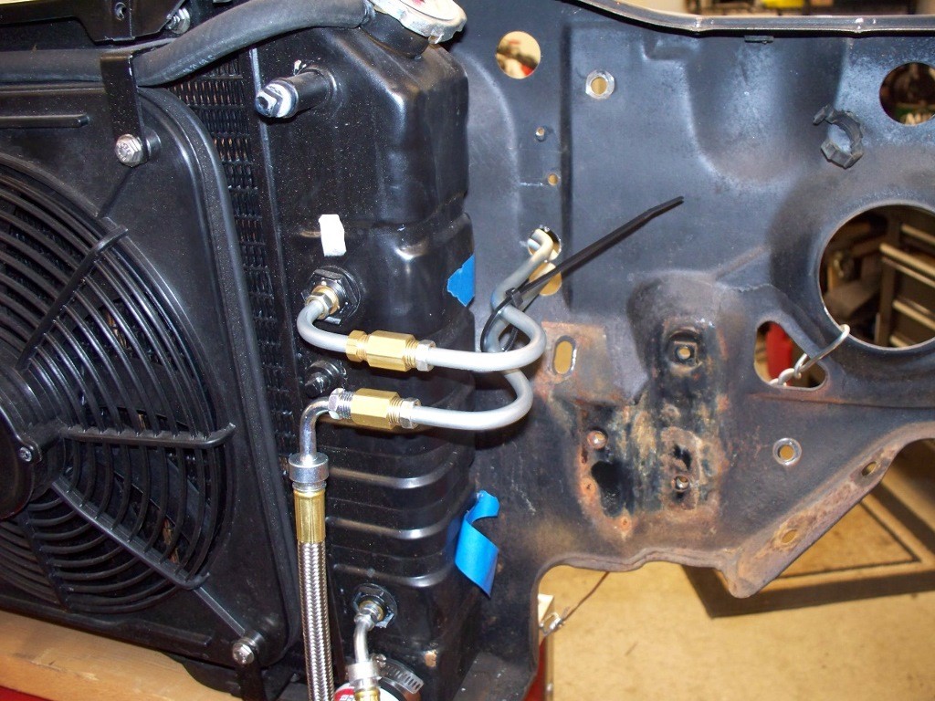 Nice work on bending those lines. My only concern would be those coolers you have in front of the radiator. That oil cooler and trans cooler may reduce air flow through the radiator itself. Which its possible you may see a rise in temp when sitting in traffic.