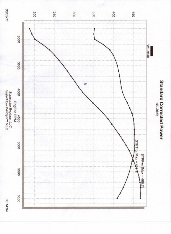 I am happy with the numbers it came up with for basically a cam, valve springs and a ECU tune. Motor was 352hp stock, so a 117 hp improvment. I had the dyno and ecu tune done at Swankee engines in Springfield, MN. They have been at Back to 50's and Car Craft with a display for sure two years. I will give you a ride Dave if mine is going before yours. The big hold up will be the cost of paint.