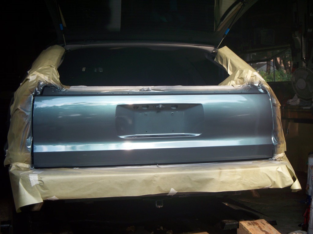 Yesterday's project was the tailgate. The license plate corners had rubbed through the paint causing some rust bubbles, and the emblems and moulding were loose (foam sticky tape had failed). When I pried the emblems all the way off, where the sticky tape didn't fail, it took the paint off. There were also some deep scratches and scuffs all over the gate... so it got re-shot.