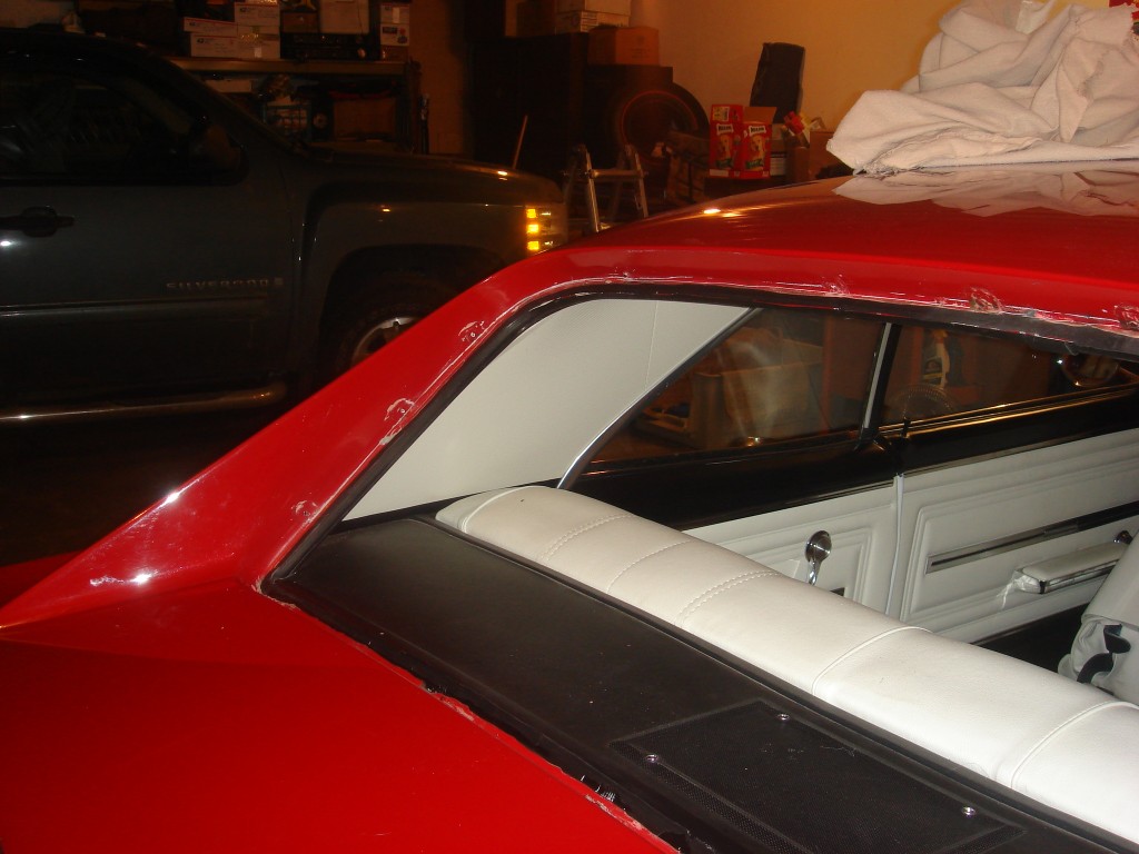 Had to remove the back glass. All clips are now off including those with pop rivets. I have removed all the excess urethane from the front pinch weld channel and about to clean that area and clean and prime the rear pinch weld area. After cleaning I will try some of that new epoxy primer in a spray can to seal the area from any scratches. Have to order that from Eastwood and some stainless screws and special clips for installing the rear sail panel molding. Just ordered some clips and screw in studs for the clips from Ashleys today. After all the prep work is done, I will have to decide if I will install the vinyl top or have someone that Karl recommended install the top. Then put the rear window back in with the butyl sealer or a urethane application similar to what is in the 66 fisher body manual.
