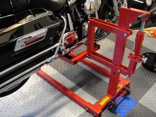 I would do as Frank suggested and support the bike with jack stand(s) once you have it in the air. You have a lift, not a stand. Or let me phrase it this way, would you work under a car supported by only a bumper jack or would you put jack stands underneath and place the load on them?
