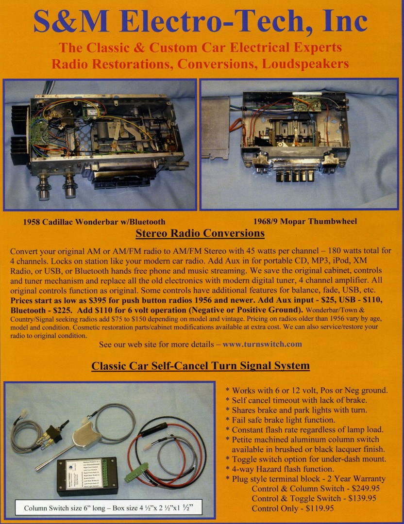 Who is S&M Electrotech? In a very simplified nutshell, they build/retrofit/restore old car radios, keeping the classic look but with modern internals. They also do speakers, including making their own version of the rectangle 70-72 Chevelle front stereo speakers. This is another one of our local guys who are experts in their field. Their website is www.turnswitch.com if you're curious.