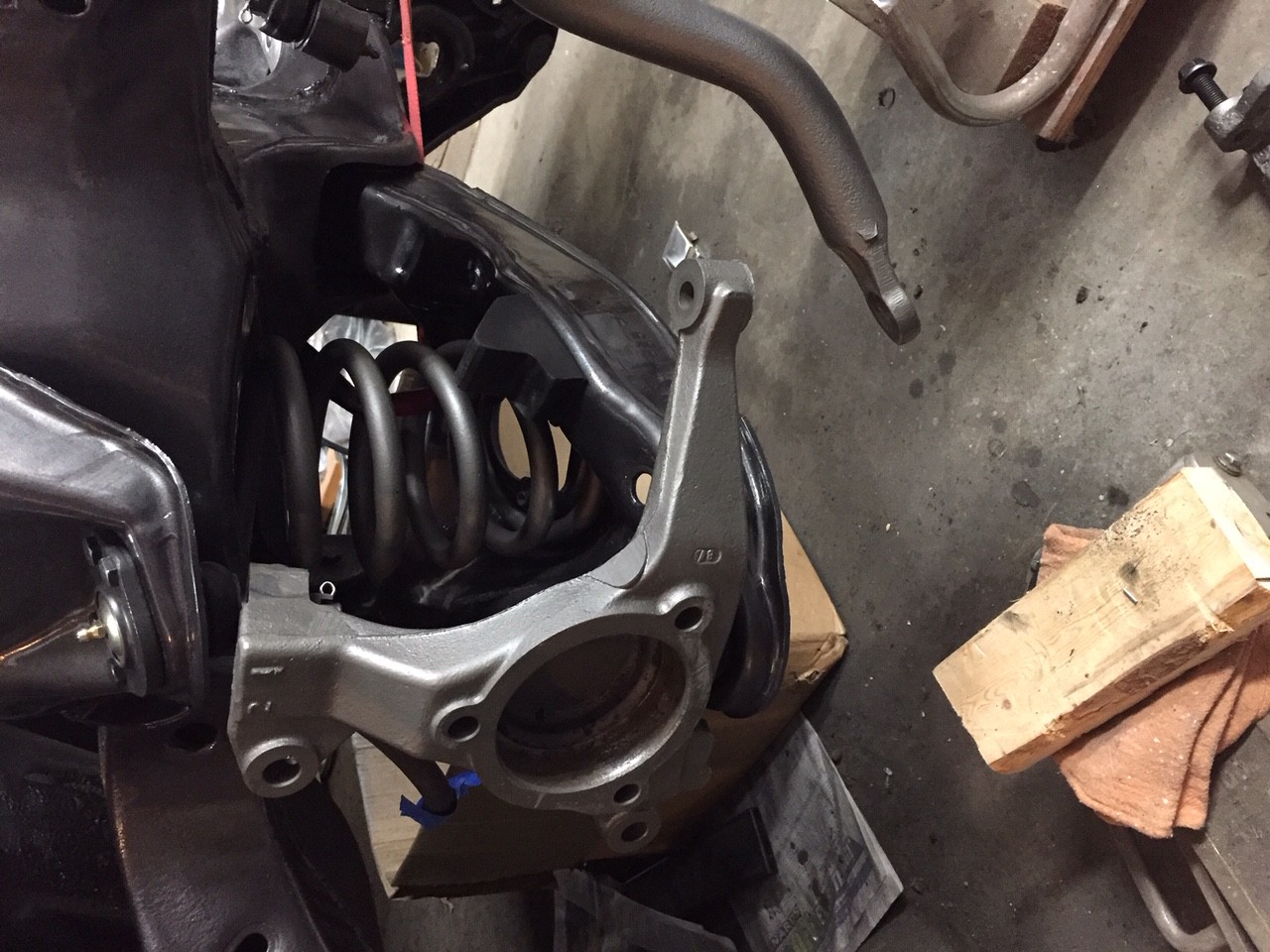 I rebuilt the front suspension using S-10 Blazer spindles and brakes. I cleaned up the rear suspension and installed an 8.5” 3.70:1 posi from a Buick National