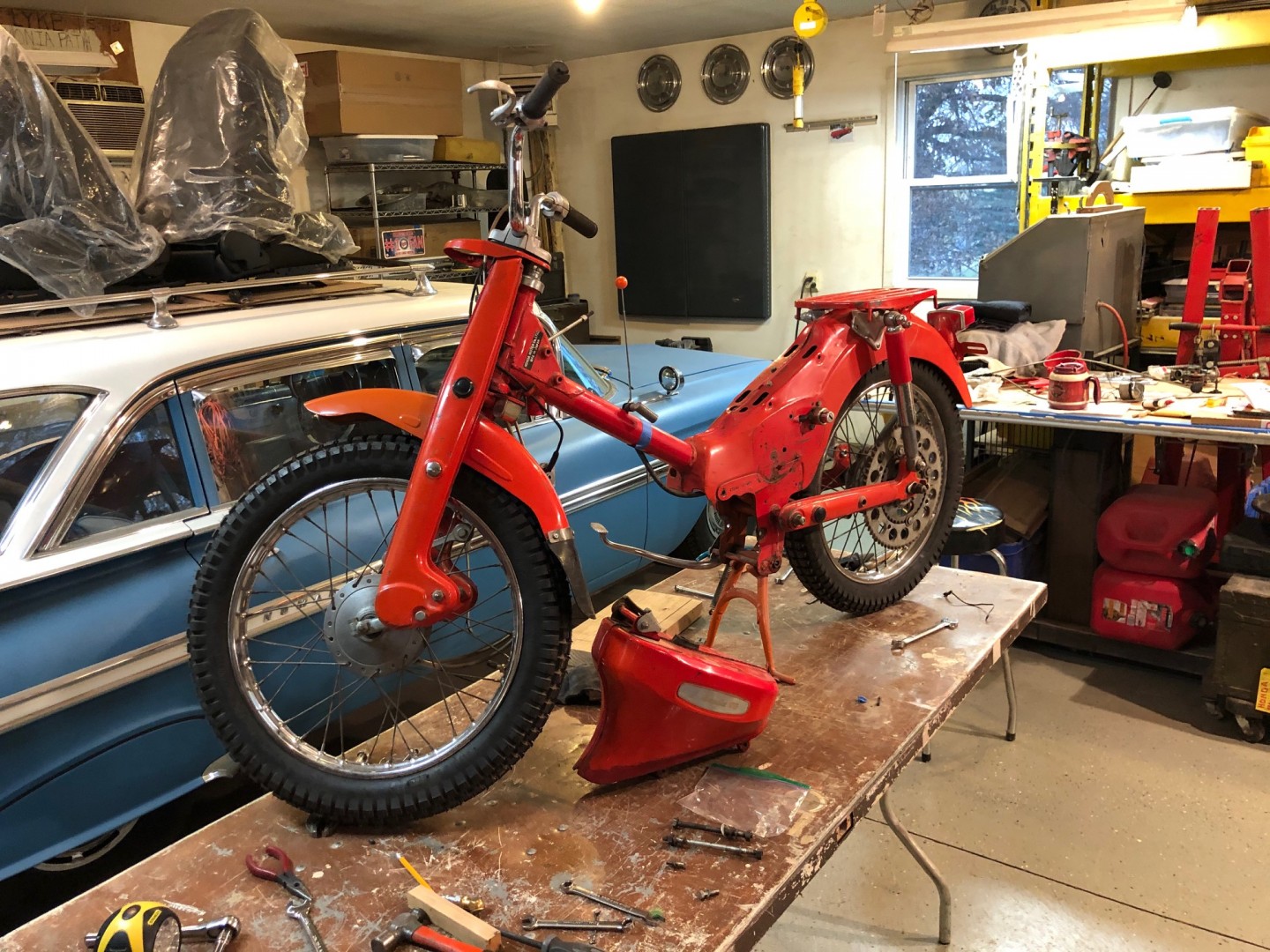 Not quite winter yet, but starting staring back on the 1964 Honda CT200, Trail 90