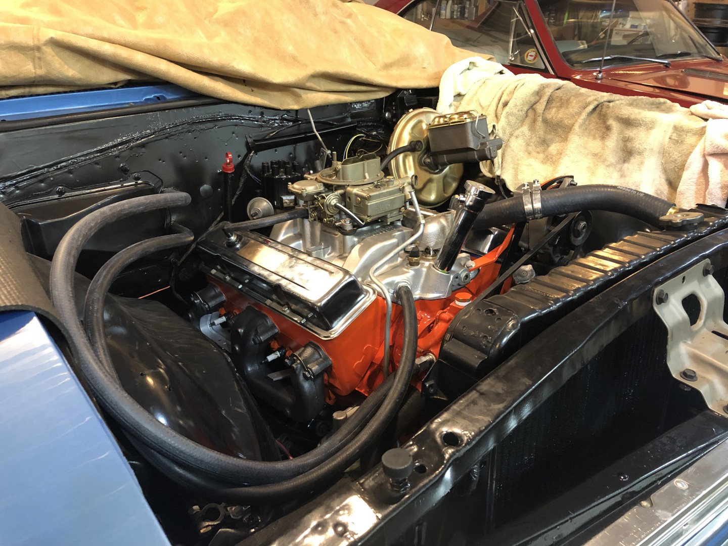 Made some progress. Need to clean and paint the grill tomorrow then install Tuesday along with headlight housings. I do have a couple of questions. The Power disc brake distribution block has the brake warning light which the 66 doesn’t have. I took it off looking for indicator that it is in the correct position; but I really don’t understand what I am looking for. Is there a photo out there? The other issue might be the forward wiring harness. Is there some way to check that all that is working before installing the engine. Oh I forgot, is it OK to install the PB booster or should I wait until the engine is in?