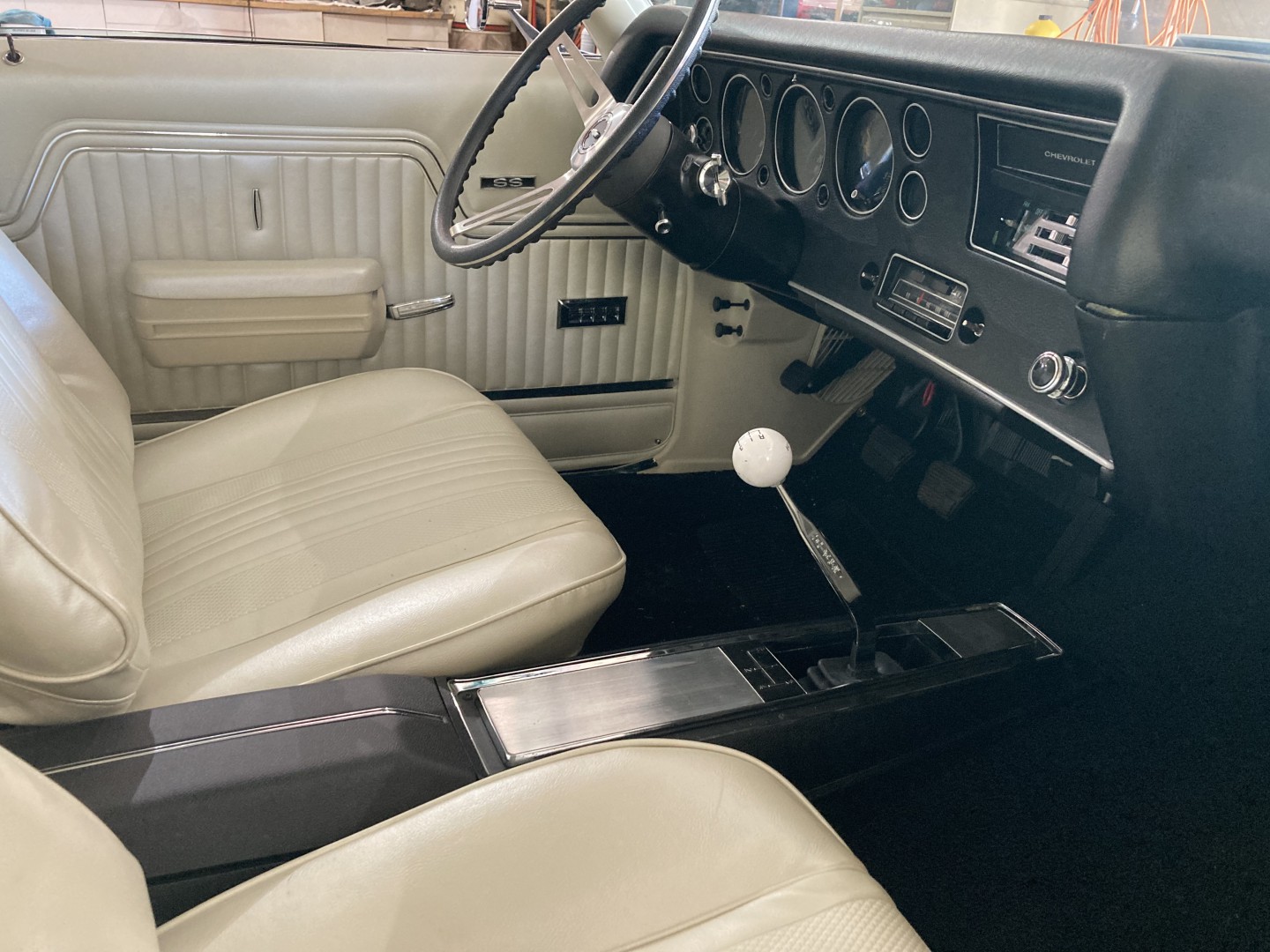 I LOVE that ivory interior. IF I ever get my '70 restored, that is what it will have. My '70 SS LS5 car I bought in 1973 was all black with the white stripe.