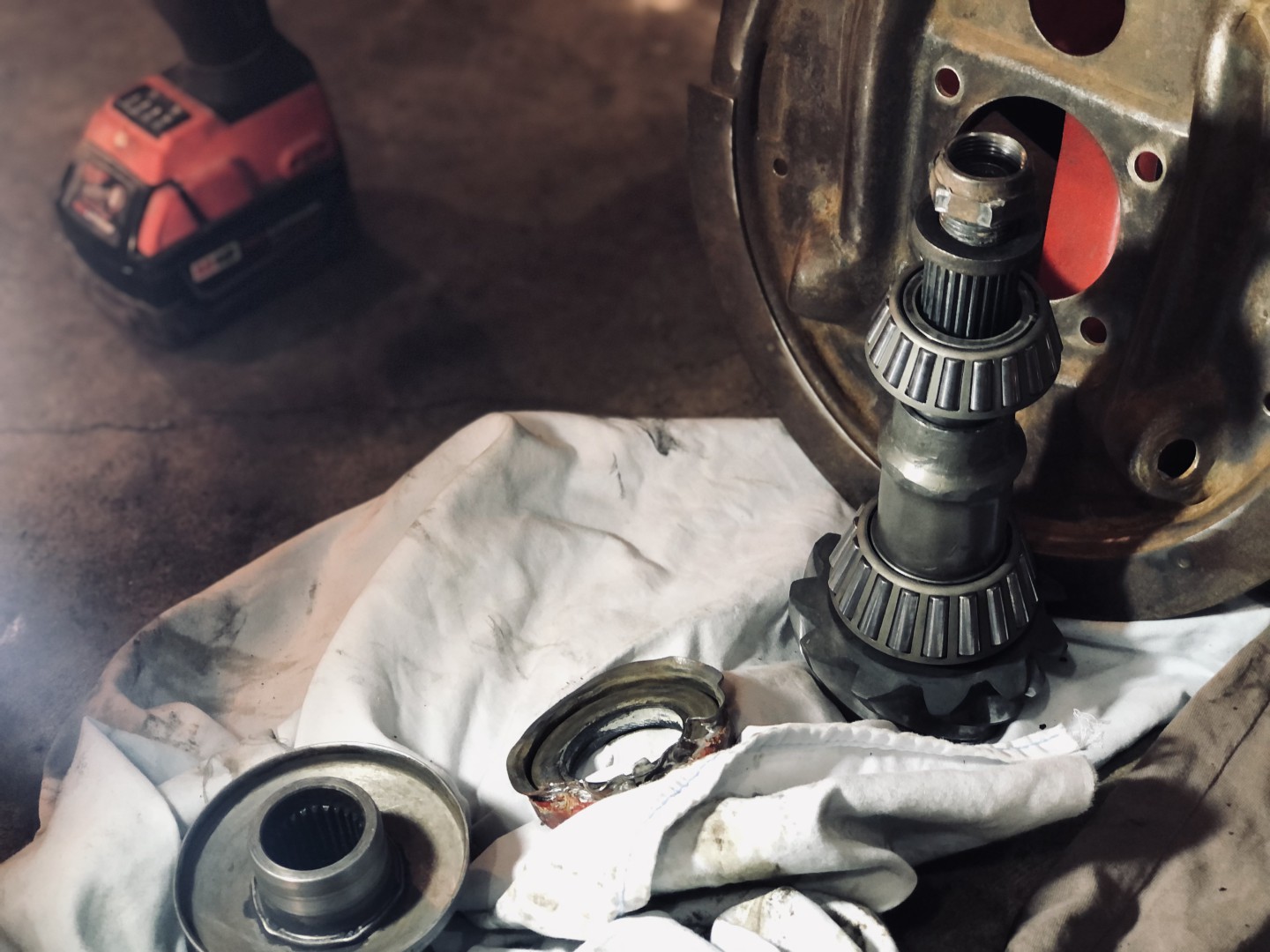 Well I decided to remove the pinion seal and possibly replace the front bearing. Everything looks good. Also considering a spacer instead of the old crush sleeve to set the pre-load. A little delayed on painting the housing. Would be nice to have a parts washer and a blast cabinet. Since I was as far as I was on cleaning the housing I decided not to have it powercoated. Actually pretty reasonable I thought. About $400 to have it cleaned at thermo, then acid dipped to remove rust, a light sand blasting, and then powercoated Including transportation. $250 to do the backing plates, springs, and spring plates.