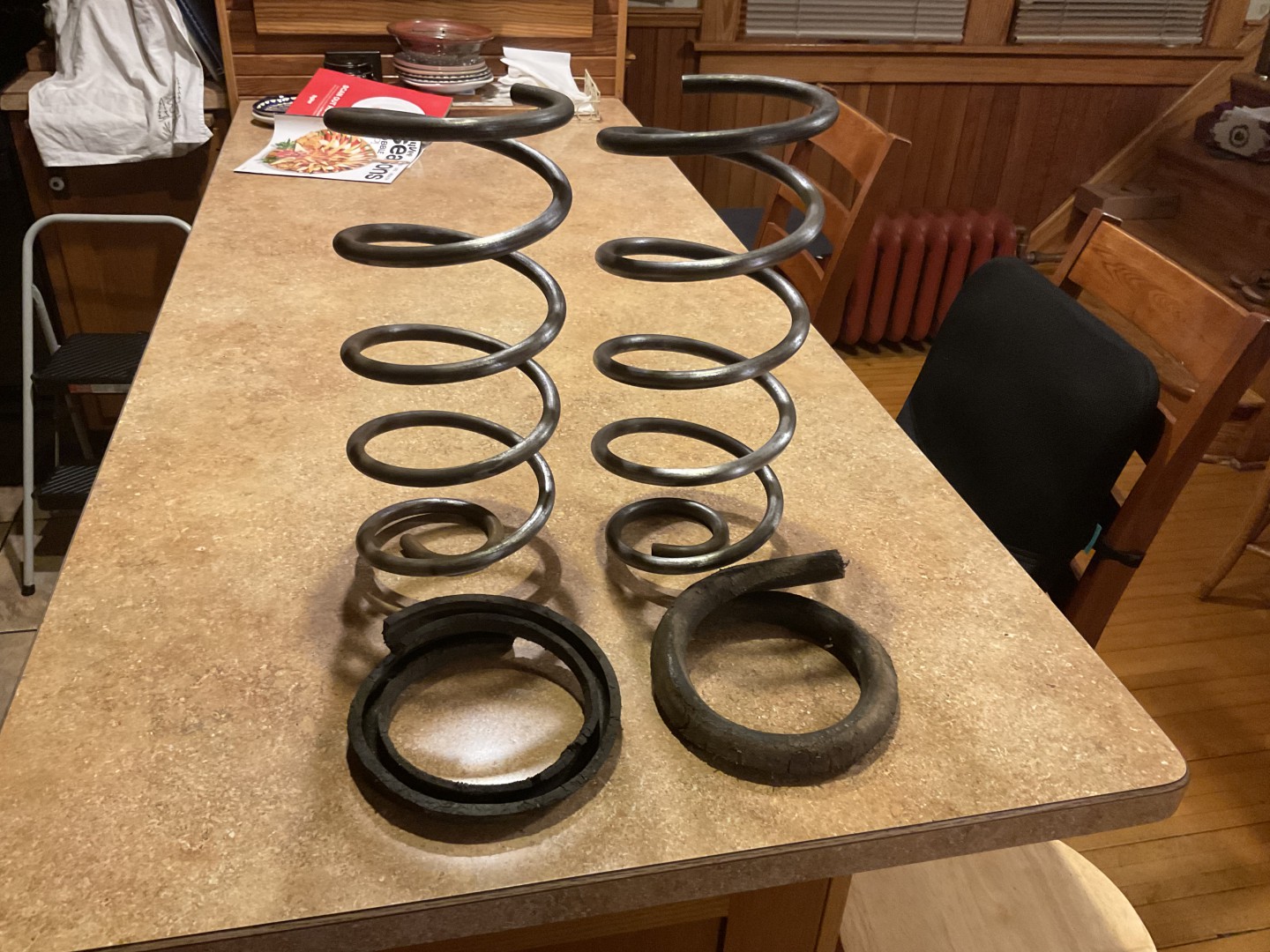 Got the CA finished. Bushings went in fine. No freezer needed,just left outside overnight. A little more sanding and cleaning needed on spring and backing plates and they will be ready for paint. Kind of odd, the top coil of the springs, the area that went under the insulator was dipped in black paint. The rest and the hold dow clamps were bare steel. The backing plates and axel tubes were bare steel the cast iron part of the housing was also bare. But sometimes they sprayed the axel housing black, along with the housing side of the backing plates, and the outside of the brake drums.