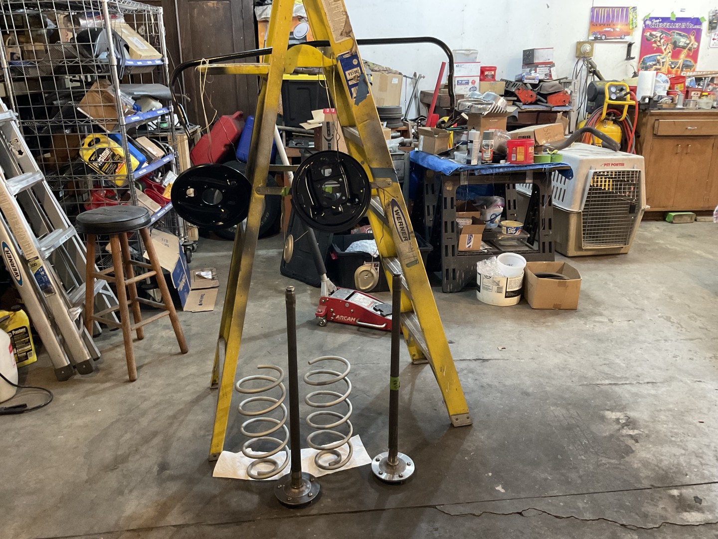 Just started to remove rear housing. Bob is helping with the posi. expecting it to be a long process. I thing Stan is much faster. I think I may have to remove the rear exhaust pipe to get the upper CA‘s out. May just have to cut the muffler exits off then deal with the muffler hangers.