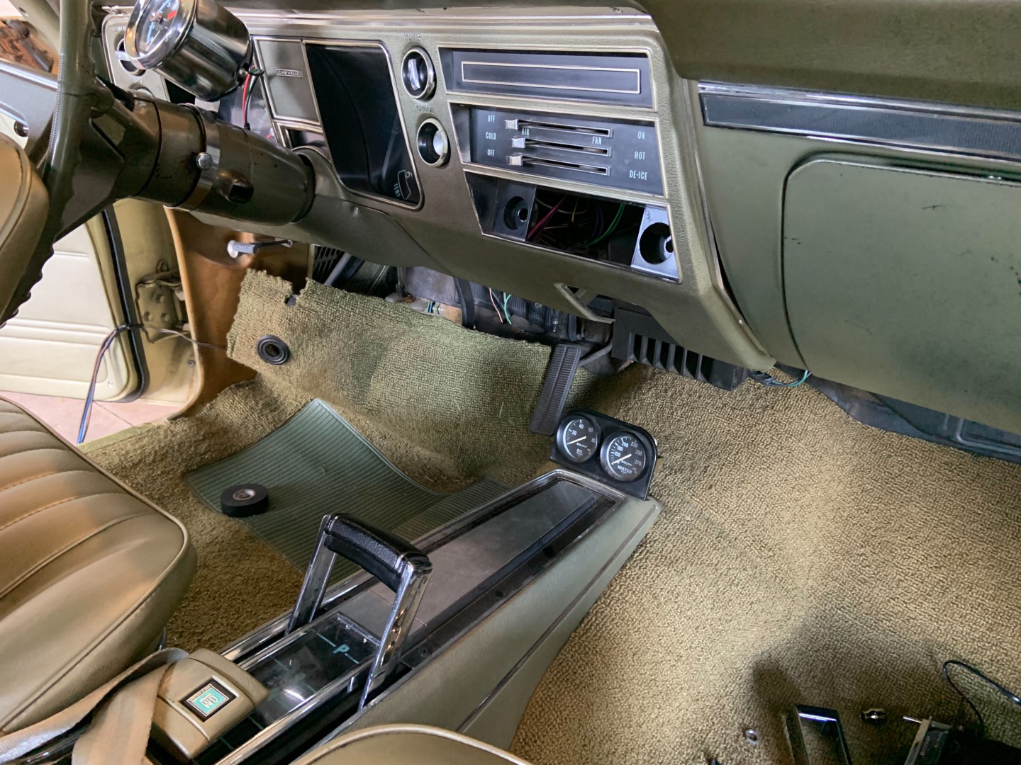 Chris S. And I started the radio replacement and speaker addition in the Chevelle last night. I only snapped one picture as it’s not quite complete. The new stereo is in place and working when Chris left last night. But, we both believe that we may have wired the new 6x9s backwards as they weren’t working last night. We tested the stereo with my garage speakers and that worked. The 6x9s are brand new, so reverse polarity must be the culprit for them not working. I also need to swap the temporary wood screws that Pioneer sends with the speaker kit for some 10-24 machine screws and nylock nuts. Just a few more punch list items and I’ll have a better sound setup than the Motorola AM radio and single dash speaker.