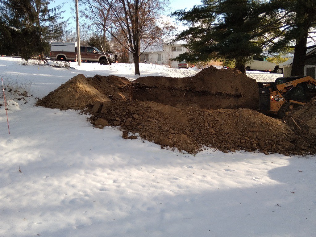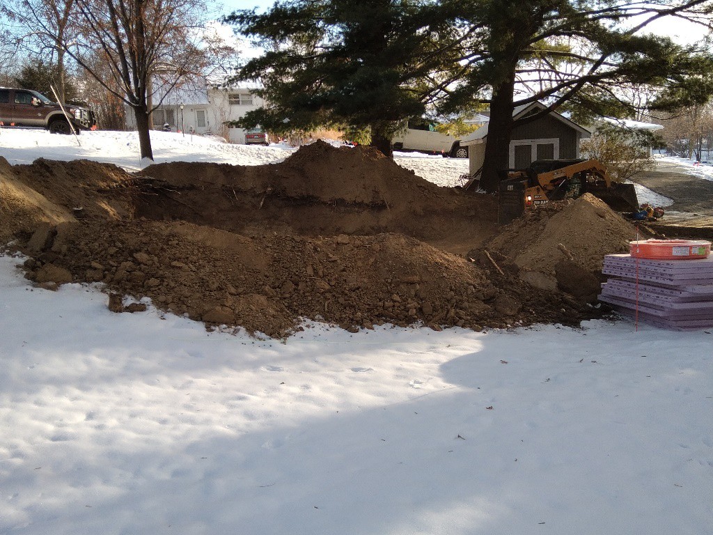 Not too much going on around here. The guys were waiting for the "thaw" to be able to start backfill and grading.