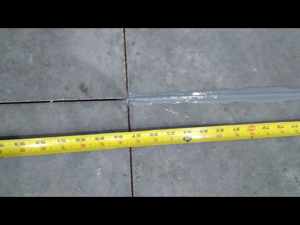 I get going. Started in a spot that wouldn't be visible later, just in case I screw up, and to "learn" a technique for application, etc. It's going great! The stuff flows out easily, self levels, about the consistency of honey. I get about 12 lineal feet done and BOOM... Tube's empty! Yep, that's right... twelve feet on one tube and I'm empty - I've got another 210 feet to go - and two more tubes to do. Ain't a gonna happen folks.