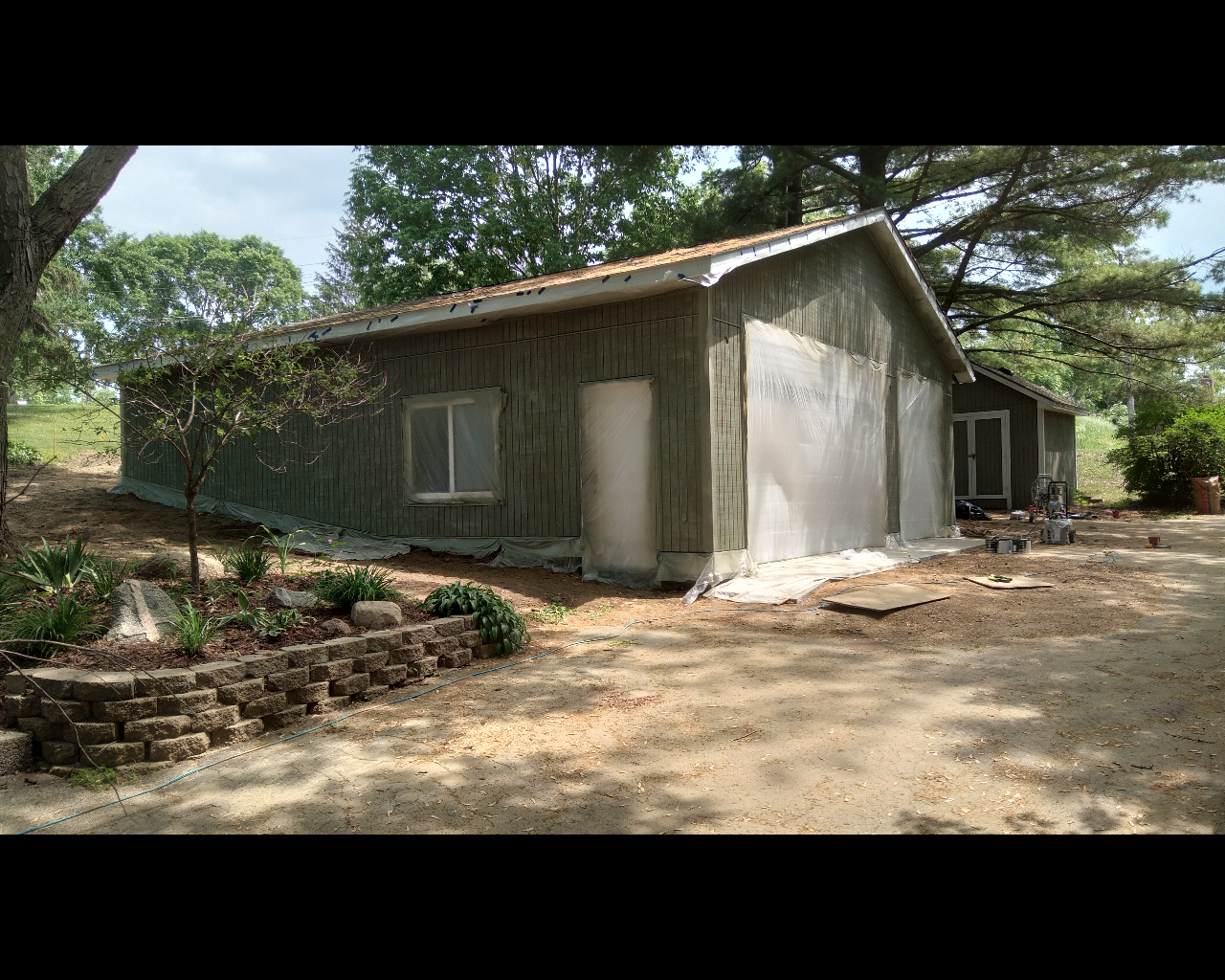 Somewhere between paint and these photo's I did the "trim out" on the exterior. Connected and hung the exterior light fixtures, and power outlets. Up until August 14th, the entire building was being run off an extension cord from the house! Had to be very careful about power draw, tool usage, etc.