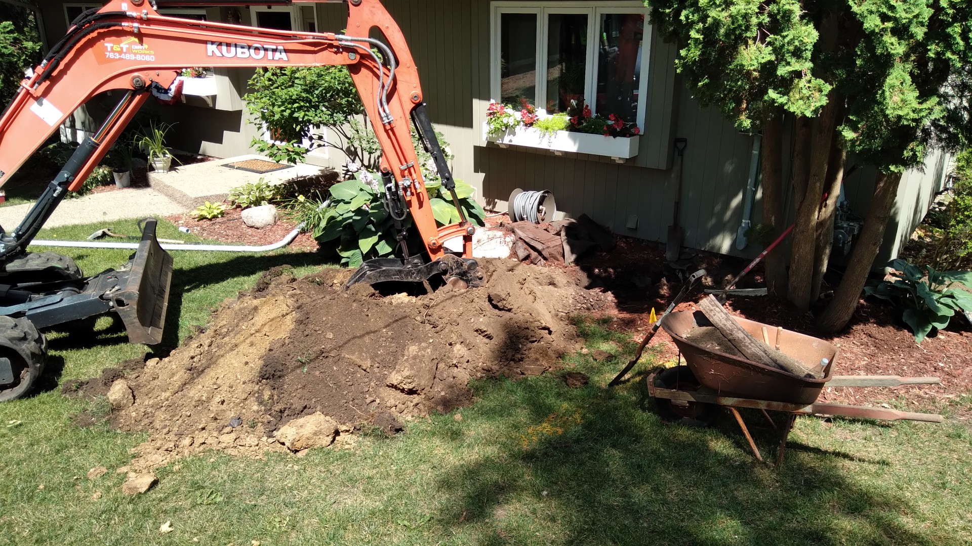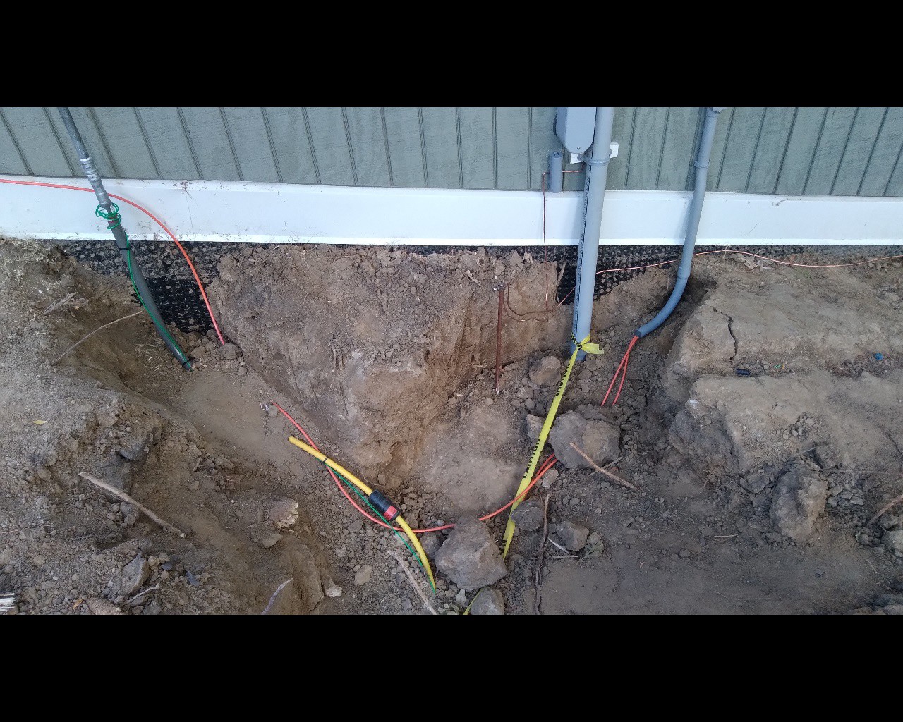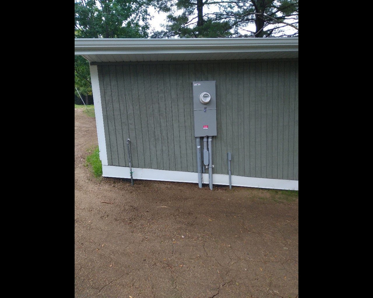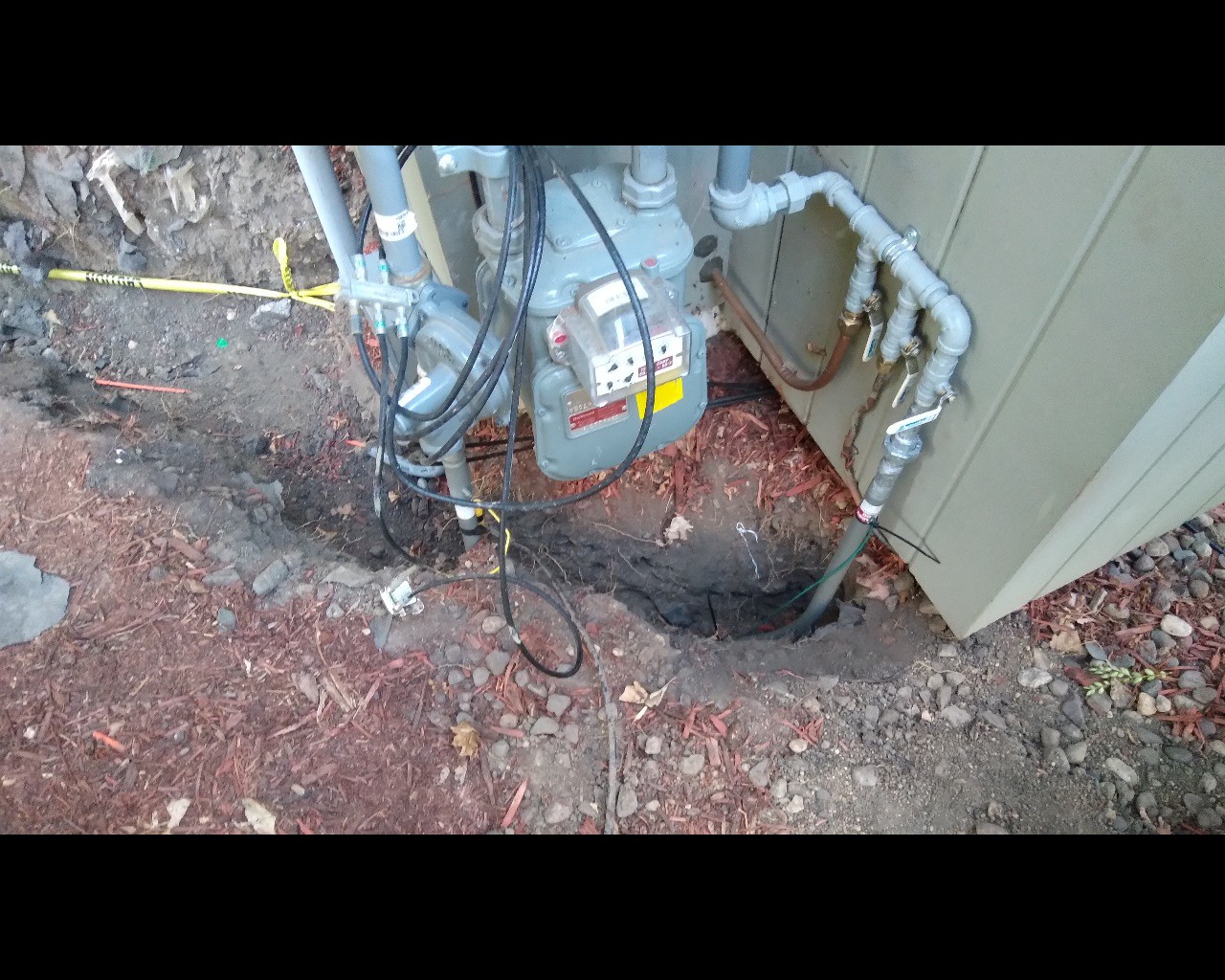 Near mid-July, the Sparky, an excavation contractor, and I trenched from the house to the garage (me getting a sweat equity discount). A 2" pipe was laid in (24" below grade), and 1/0 conductors pulled in. These were just left in the panel boxes in preparation for "cut-over" day. The trench was backfilled 6", then the new gas line & tracer wire laid in. A little more backfill, then a new cable TV/Internet wire installed as well. Then full backfill & grading. Some grass seed and now we wait for Xcel Energy.