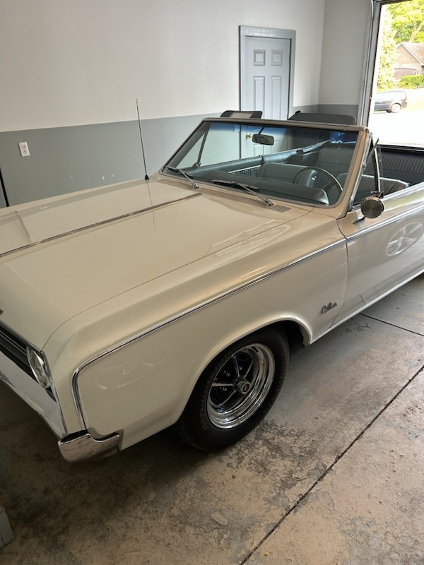 The Cutlass is a REALLY nice car. Karl will tell you it needs paint, but he is a lifetime body and paint guy, who can pick out the smallest imperfection. I wish the paint on my '66 SS was this nice. What you don't see is the Blue top to match the Blue interior. Rare combo and, in my opinion, much cooler than black or white...