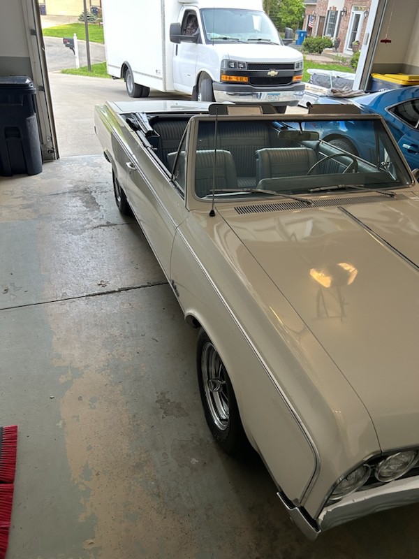 Vickies first car was a 1964 Cutlass convertible that I repaired and built.