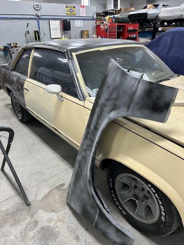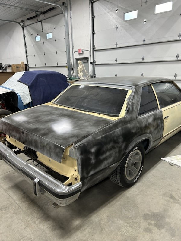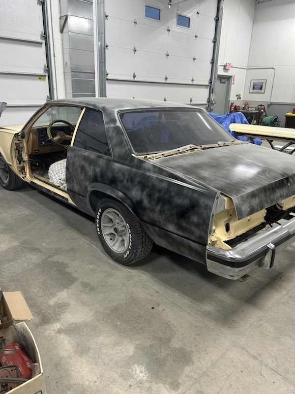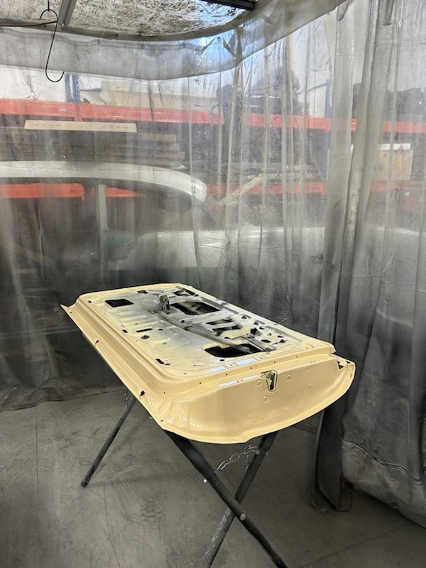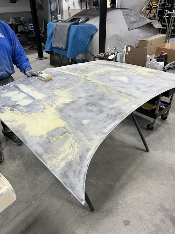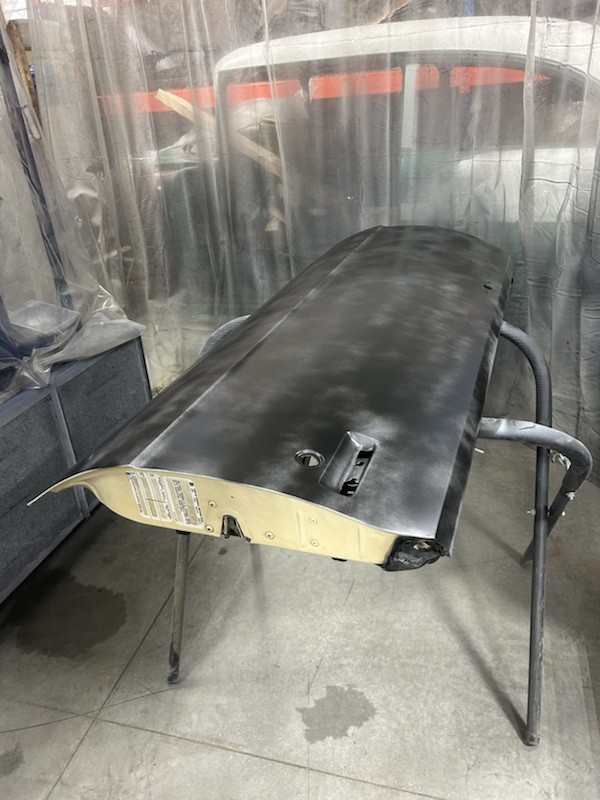He Stripped Roof, Trunk, 1/4 panels, L/door and rocker panels, did some PDR and some Chemical filler work, primed.