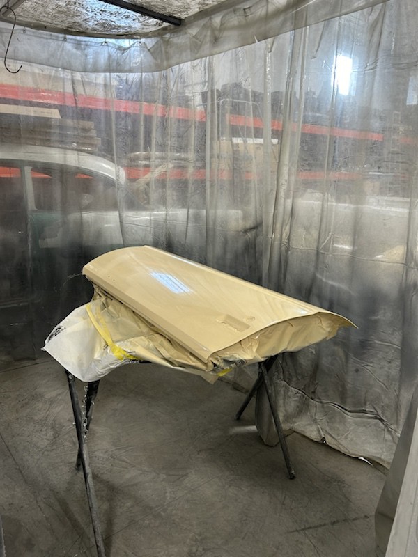 Scot continues his efforts. Built a spray area, using the prep station for ventilation.