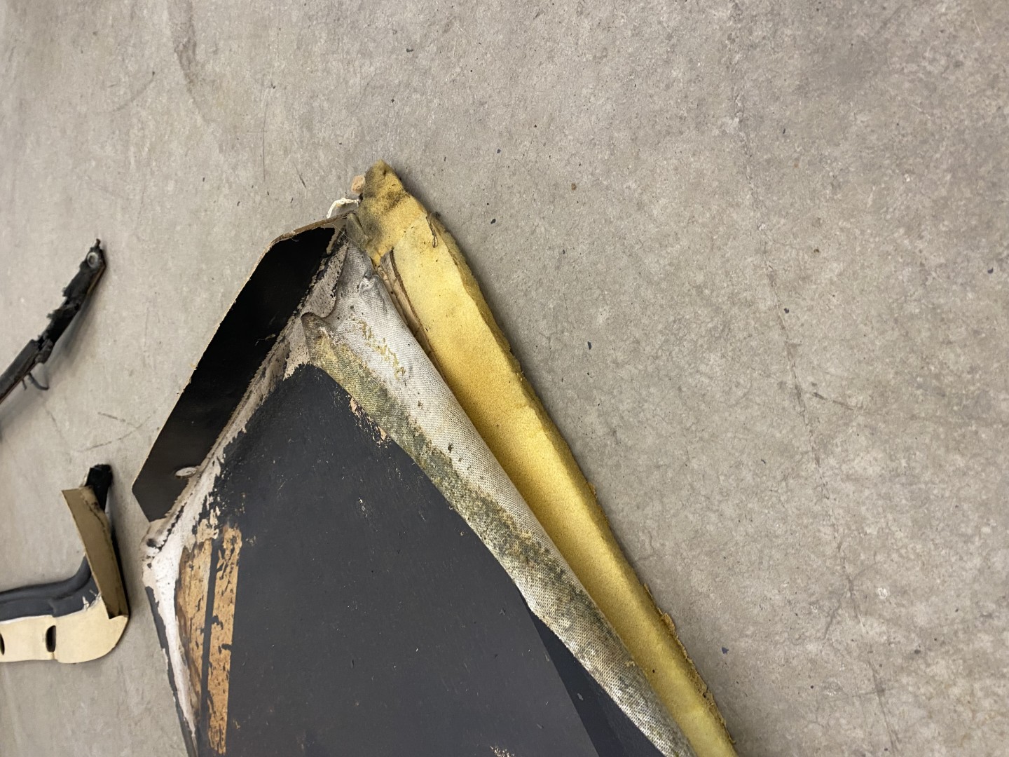 I decided to address the worn carpet on the rear deck/package tray. It appears that this was maybe just an accessory? It was glued down in a couple corners and stapled down in others, not a big deal since the package tray itself is pretty rough. I had no idea how much had to be disassembled to get that out!