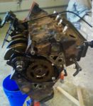 Spend the last few nights stripping it down to a "long block" - pulling the accessory drive system and intake manifold - and cleaning years of crud & gunk off of the parts. Got everything cleaned or blasted, painted & reassembled into "sub-assemblies. (I'll post pics later)