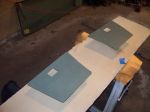 While that was drying I dug out some 18ga. aluminum sheet I had laying around, and cut some panels. These will be used to cover the side/ends of the box, concealing the factory access holes. It also gives me a handy spot to recess in some courtesy lights (scrounged from a Caddy DeVille B-pillar).