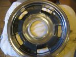 Sorry Mitch, I thought you had a set.  Your right, the pot metal center section are quite heavy and held on to the stainless part by 10 screws.  Then the stainless part is molded over the steel inner ring, that the mounting tabs are secured to.  The inner steel ring looks like it extends all the way under the outer stainless lip and the steel is pretty stiff, so if you took the spot welds out, I don't know if it would be flexable enough to kind of pull out from under the lip as John mentioned, which  seems to be the only option if it is indeed possible. What I need is a power tool that would undo the lip  that  the original tool  formed.