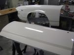 Busy weekend. The body is blocked again and again. I reshot the 2K this morming. Sanded the Ecoat off the new trunk lid and header panel Saturday. Made some adjustment to the header panel with the grinder and Unibit so it fits right. Put the lid and header in Epoxy Saturday and 2K today.