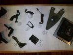 Agree with Chris on the other brackets for cables and the far right is a Hurst shift boot and retaining flange...