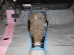 Today I reinstalled the transmission mock-up case so we can complete the exhaust system. Then as soon as the exhaust system is done I’ll remove it and the transmission case to make ready for the real transmission install; I ordered the 4L60E from John today.